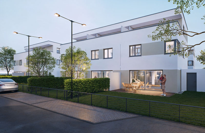 6 Doppelhaushälften und 9 Reihenhäuser in Effizienzhaus EH55 (GEG2024) in Langweid am Lech