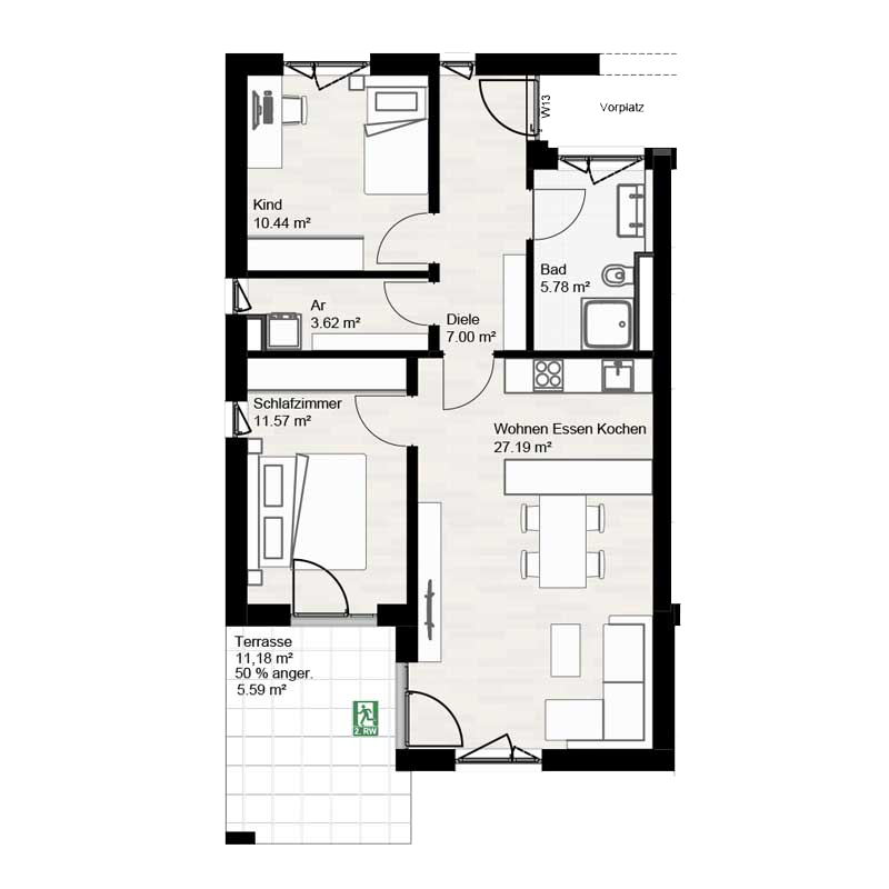 Die großzügig geschnittenen Grundrisse bieten viel Licht und Platz zum Leben, während hochwertige Materialien und eine durchdachte Ausstattung für ein dauerhaft gutes Wohngefühl sorgen.