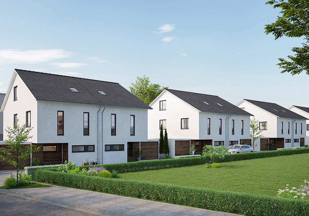 8 moderne Doppelhaushälften nach Effizienzhaus 55